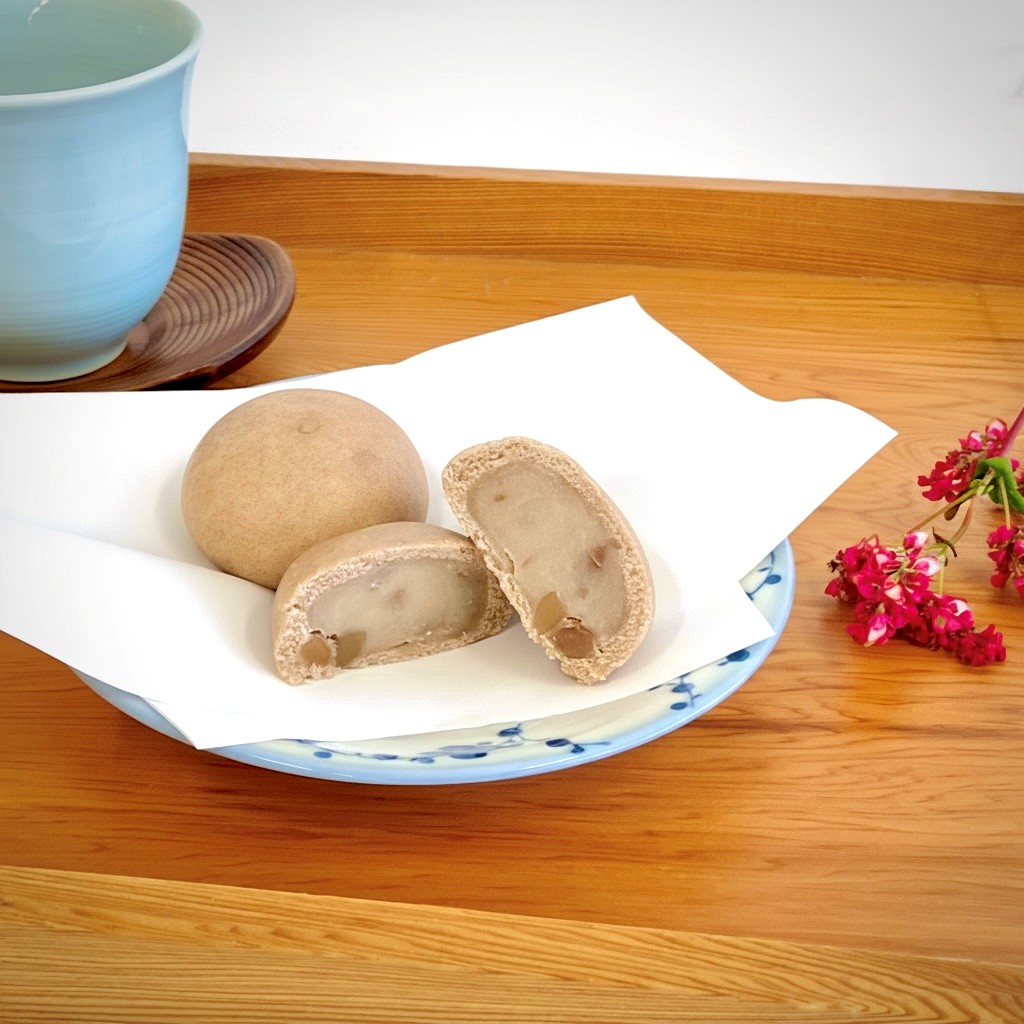 皮の部分には高嶺ルビーの蕎麦粉を配合し、ほのかな赤みが可愛らしい饅頭に仕上げました。